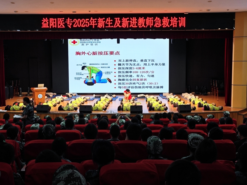 9月中下旬,益阳市红十字会联合益阳医学高等专科学校、益阳师范高等专科学校智能化培训基地给军训期间的2025级新生和辅导员开展应急救护培训,5000余名师生取得“心肺复苏(CPR+AED)”证书。