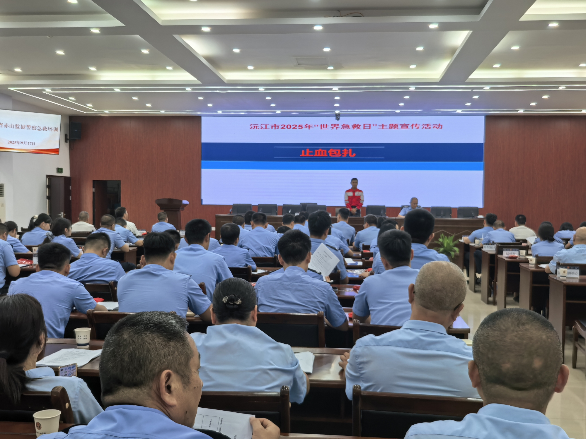 9月17日,沅江市红十字会在湖南省赤山监狱开展第八期红十字救护员(初级)培训暨“世界急救日”主题宣传活动,共计85名监狱干警参加。