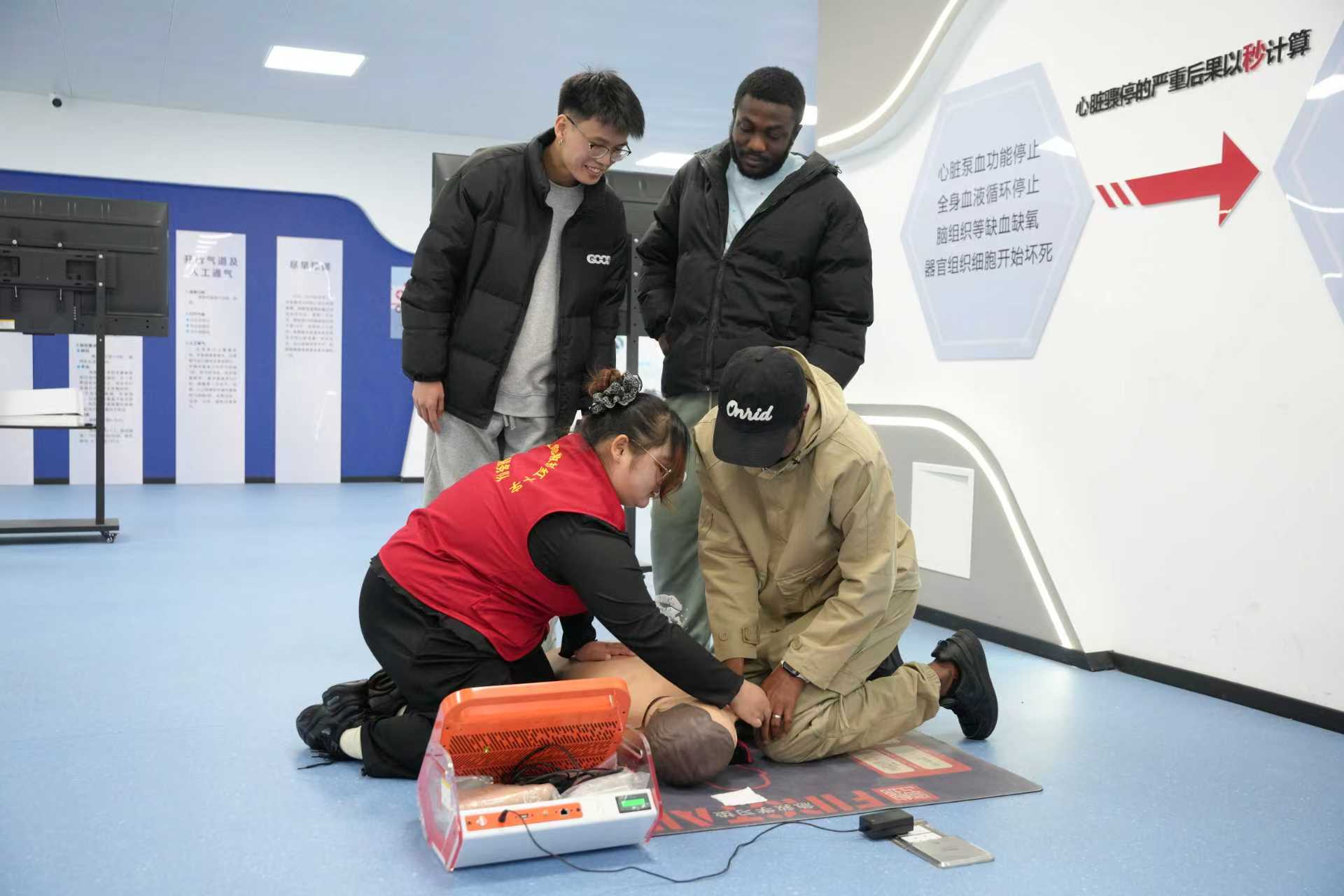 1月13日下午,益阳医学高等专科学校联合湖南城市学院开展留学生急救教育交流活动,9名来自马来西亚、肯尼亚等国家的留学生走进益阳医专急救培训基地解锁应急救护技能。