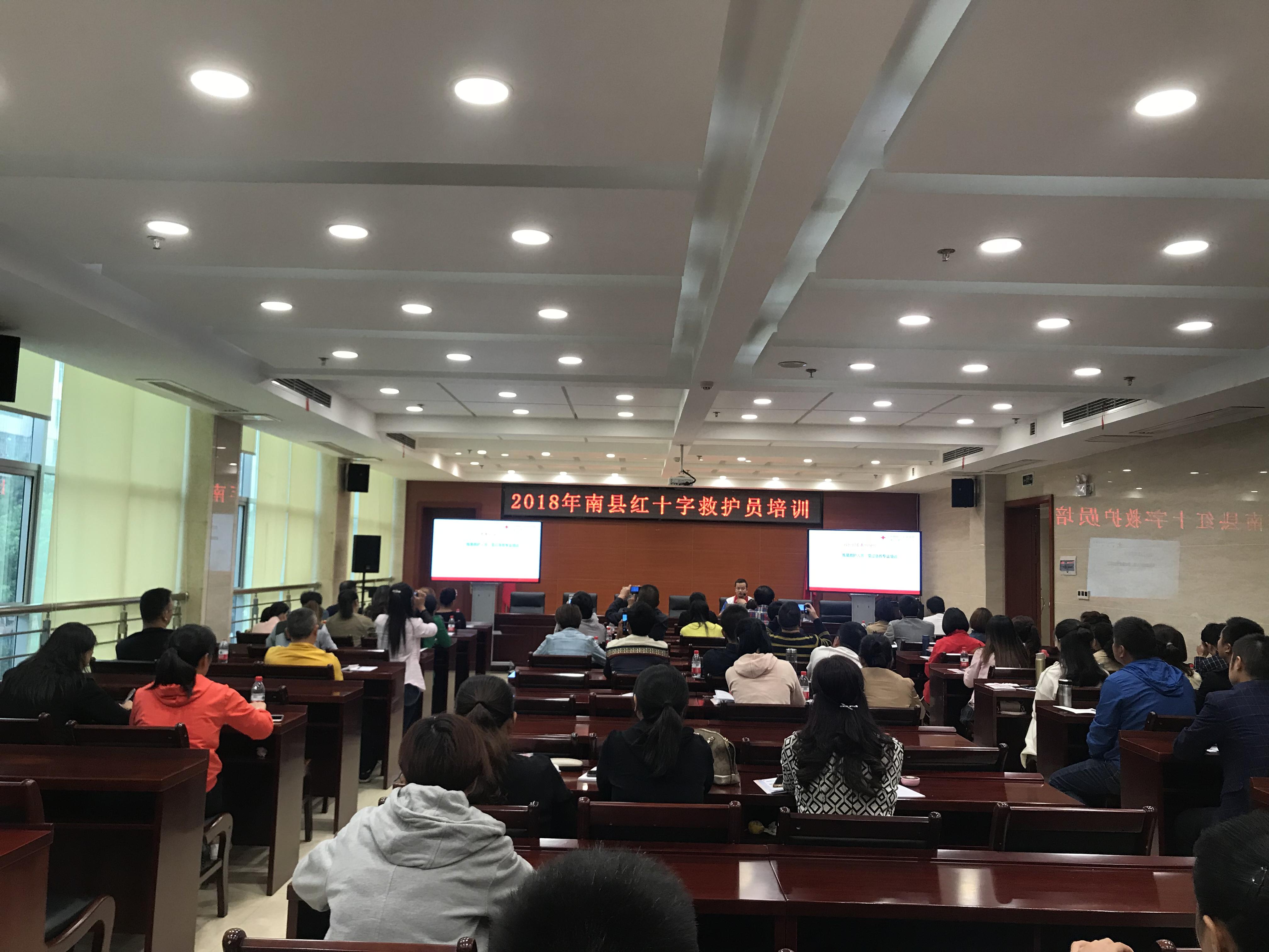 10月13日至14日,南县红十字会在县人民政府会议中心举办了为期两天的红十字救护员培训,来自全县各机关事业单位及社会团体的70余名红十字志愿者参加了此次培训。