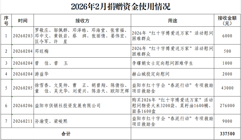 2026年2月捐赠资金使用信息