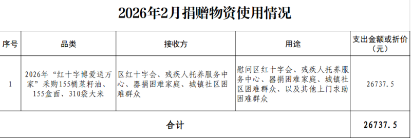 2026年2月捐赠物资使用信息